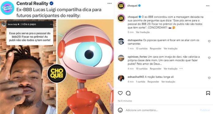 Através dos stories no Instagram, Luigi interagiu com os seguidores e em um questionamento ele aconselhou os futuros brothers e sisters. “Esse pós serve para o pessoal do BBB 25! Focar no prêmio! As publis não são todos que têm sorte!”, declarou ele, indicando para que os próximos confinados em 2025 foquem no prêmio mesmo e evitem pensar que vão fazer sucesso após deixar o jogo.