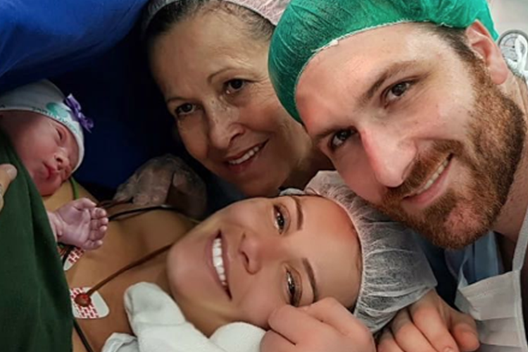 “Hoje, às 5h30, acordei para fazer aquele xixizinho matinal de grávida… eis que volto para a cama e o xixi não parou! Não… espera… o chão também estava todo molhado: Ai, meu Deus, a minha bolsa rompeu! Pessoal, a Aurora está a caminho!”, disse Renata em sua rede social antes do parto.