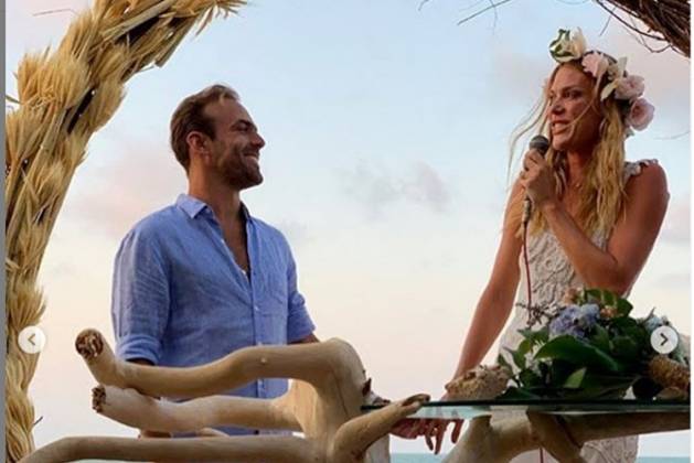 O ex jogador e comentarista da Rede Globo Roger Flores, se casou com a modelo Betina Schmidt.
