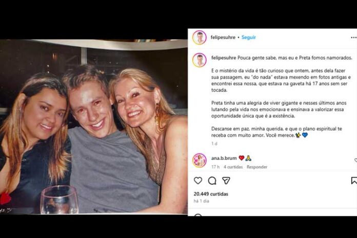 Através de uma publicação compartilhada em seu perfil no Instagram, nesta segunda-feira (21), o ex-repórter do programa “Mais Você”, Felipe Suhre revelou já ter namorado com Preta Gil, falecida no último domingo (20), após luta contra o câncer.
