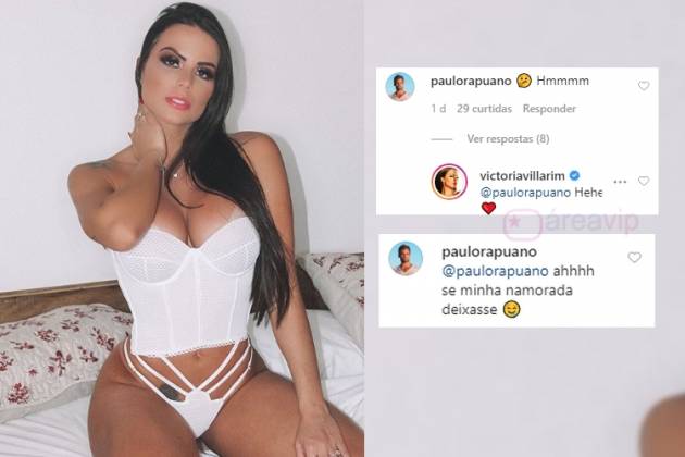 Dentre os comentários dos fãs que não pouparam nos elogios gratuitos, seu mais novo affair, o empresário Paulo Rapuano, reagiu de maneira ciumenta, e que claro, com apenas um termo já podemos detectar que o felizardo ficou ’emocionado’ ao se deparar com a ousadia do seu novo amor. “Hmmmm”, disparou. Ao reagir, Victória, brincou, e escreveu: “Hehe”. Ele, então, entrou na onda e acrescentou: “Ahhhh se minha namorada deixasse”, concluiu.