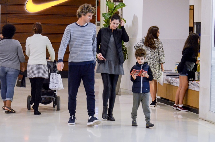 Sucesso na transmissão da última Olimpíada, quando ganhou o apelido de “Labrador Humano”, Gustavo Kuerten foi clicado com a mulher, Mariana Soncini, e o filho caçula, Luis Felipe.