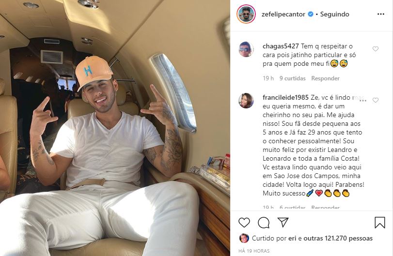 Mas no meio de diversos elogios, um comentário chamou a atenção, isso porque uma internauta, além de elogiar o sertanejo, deixou um pedido diferenciado. É que a mulher afirmou que é muito fã do cantor Leonardo, pai de Zé Felipe, e queria muito poder conhecê-lo pessoalmente.