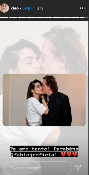 Cléo, que assim como o irmão também está no ar com a reprise especial de “Haja Coração”, novela das 19hs, na também na emissora carioca, usou seu Instagram na parte dos stories para prestar sua homenagem e se declarar ao pai famoso. No clique, a atriz surge beijando Fábio com a legenda “Te amo tanto! Parabéns @fabiojroficial” e diversos corações.