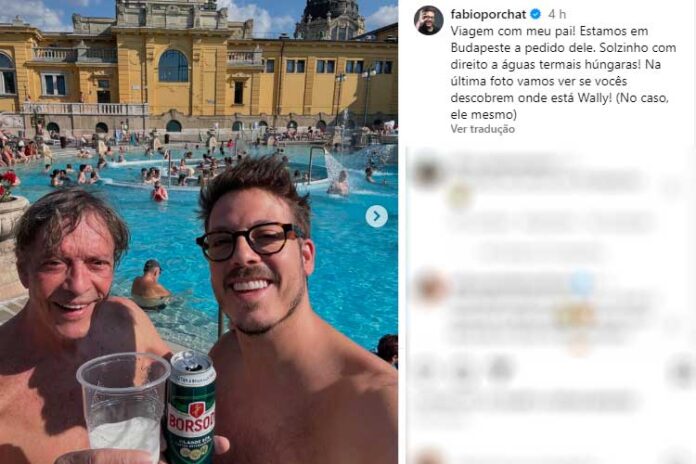 Fábio Porchat compartilhou com seus seguidores no Instagram nesta quinta-feira (30) um registro ao lado do pai, Fábio Ferrari Porchat de Assis, durante uma viagem de férias em Budapeste, na Hungria.