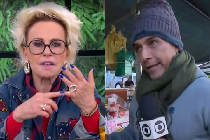 Brincando, Ana Maria Braga ainda pediu desculpa a Fabrício Battaglini por fazê-lo caminhar pela feira no frio matinal. “Sei de tudo nada. Pode falar: ficou tão nervoso que passou pelo caqui. Desculpe, Fabrício. Desculpe eu fazer você andar com esse frio todo”, brincou.