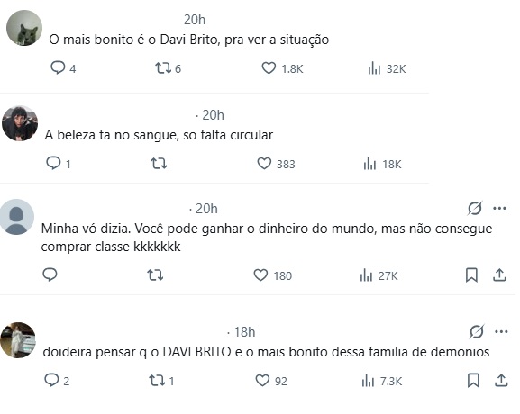 Felizmente, outros internautas repudiaram os ataques sofridos pela família de Davi Brito. Uns, inclusive, associaram as ofensas ao racismo e xenofobia.
