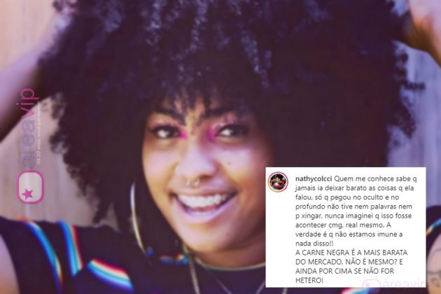“Quem me conhece sabe que jamais ia deixar barato as coisas que ela falou, só que pegou no oculto e no profundo não tive nem palavras nem pra xingar, nunca imaginei que isso fosse acontecer comigo, real mesmo”, iniciou a influenciadora digital. “A verdade é que não estamos imune a nada disso! A carne negra é a mais barata do mercado, não é mesmo? E ainda por cima se não for hétero!”, lamentou ela, que também é conhecida como ‘blogueirinha de favela’.