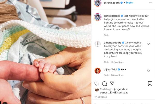 A dor de perder um filho é imensurável. Nesta quarta-feira (25), a cantora e compositora norte-americana Christina Perri usou as redes sociais para fazer um triste comunicado aos seguidores. A filha da artista, do casamento com Paul Costabile, morreu logo após o parto.