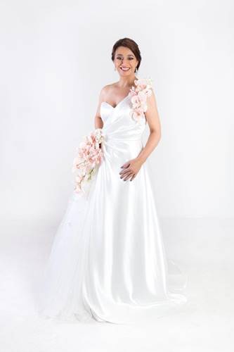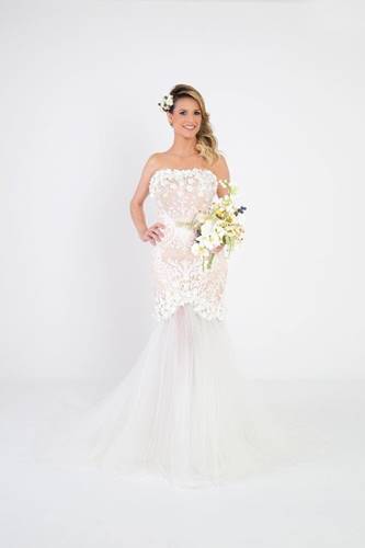 Cátia Fonseca – Nelson Pantano, medalha de ouro na maior competição de bolos do mundo realizado na Inglaterra, dentro da categoria Floral Sugarcraft criou com maestria dezenas de orquídeas em açúcar que foram aplicadas no vestido e buquê da apresentadora.