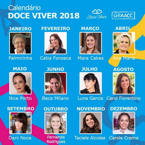 O GRAACC lançou no último dia 30, no Spazio Olímpia, o calendário “Doce Viver 2018”.