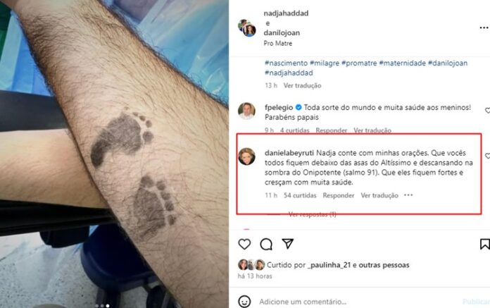 A apresentadora ainda recebeu o carinho especial de sua ex-chefe, a nova vice-presidente do SBT, Daniela Beyrutti. “Nadja conte com minhas orações. Que vocês todos fiquem debaixo das asas do Altíssimo e descansando na sombra do Onipotente (salmo 91). Que eles fiquem fortes e cresçam com muita saúde“, escreveu ela.
