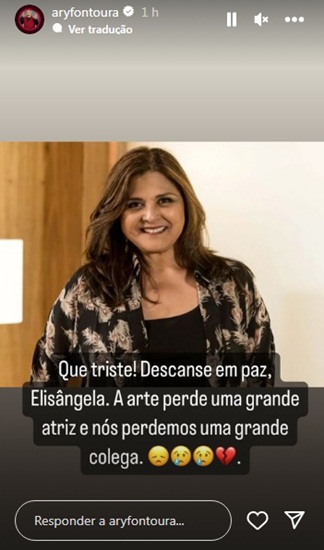 Ary Fontoura também se despediu da artista através dos stories do Instagram. “Que triste! Descanse em paz Elizangela. A arte perde uma grande atriz e a gente perde uma grande colega”, ressaltou o veterano.