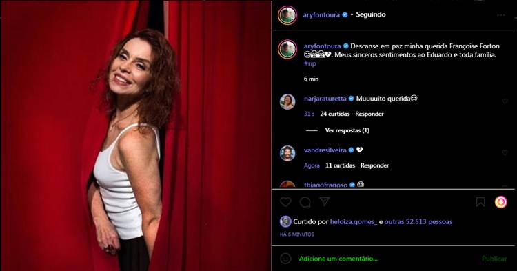 Ary Fontoura desejou pêsames à família. “Descanse em paz minha querida Françoise Forton. Meus sinceros sentimentos ao Eduardo e toda família”, escreveu.