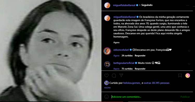 Miguel Falabella lembrou o início da carreira da atriz. “Os brasileiros da minha geração certamente guardarão esta imagem de Françoise Forton, que nos encantou a todos, na alvorada dos anos 70, quando surgiu, iluminando a tela em Marcelo Zona Sul. Uma colega gentil, uma atriz que conhecia o seu ofício, Françoise despede-se deste plano deixando fãs e amigos saudosos. Descanse em paz querida! Fica aqui minha singela homenagem”, escreveu.