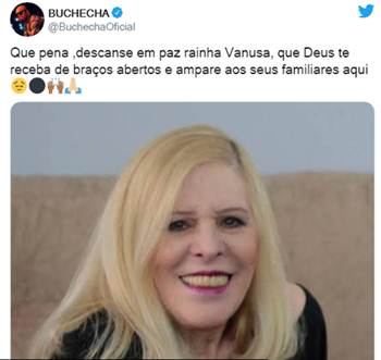 No Twitter, o cantor Buchecha chamou a cantora de rainha e lamentou a morte da colega. “Que pena, descanse em paz rainha Vanusa, que Deus te receba de braços abertos e ampare aos seu familiares aqui”, escreveu o cantor.