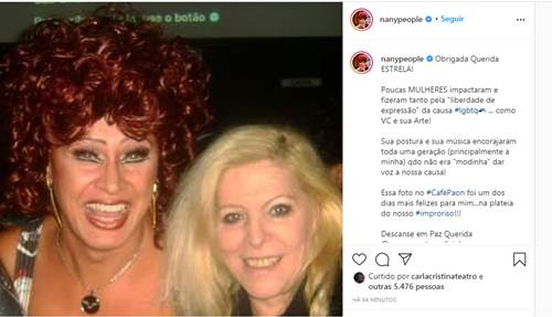 A atriz Nany People usou o Instagram para se despedir da cantora. “Obrigada Querida ESTRELA! Poucas MULHERES impactaram e fizeram tanto pela “liberdade de expressão” da causa #lgbtq🌈 … como VC e sua Arte!”, escreveu.