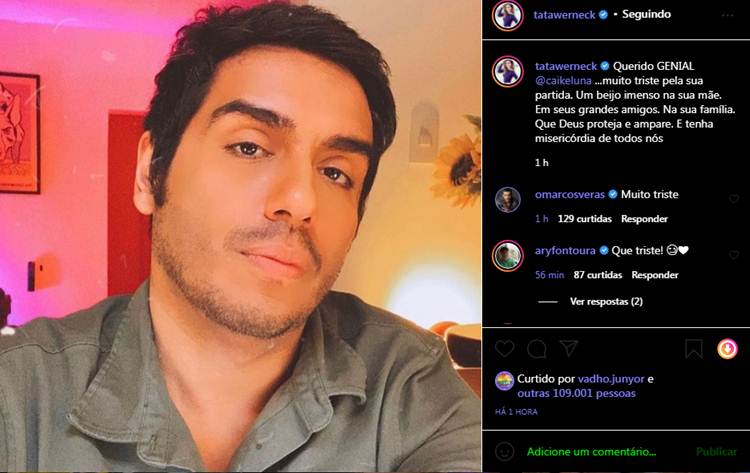 Tatá Werneck fez um post em seu perfil no Instagram. “Querido genial Caike Luna. Muito triste pela sua partida. Um beijo imenso na sua mãe. Em seus grandes amigos. Na sua família. Que Deus proteja e ampare. E tenha misericórdia de todos nós”, disse a apresentadora.