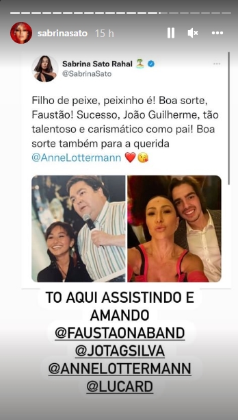 Outra que não ficou de fora foi a apresentadora Sabrina Sato da Record, assim como o mais novo contratado do SBT Otaviano Costa, os cantores, uma categoria que faz parte das atrações de Fausto como a dupla Marcos e Belutti, o sertanejo também deixou seu recadinho, todos parabenizando Fausto Silva pela estreia de ‘Faustão na Band.’