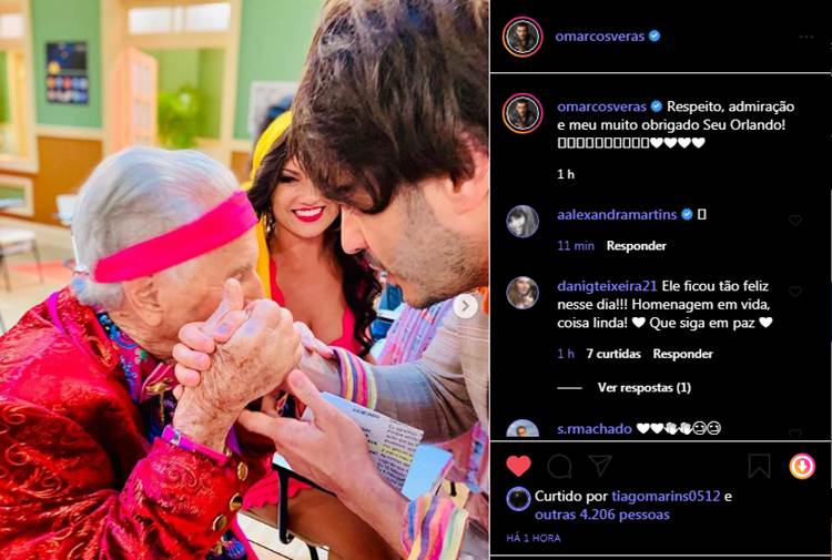 Marcos Veras também falou da admiração pelo artista em seu perfil no Instagram. “Respeito, admiração e meu muito obrigado Seu Orlando! ❤❤❤❤”, escreveu o ator na legenda da foto dos bastidores da Nova Escolinha.