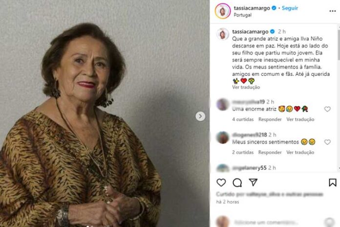 Tássia Camargo também prestou sua homenagem a Ilva, afirmando que a atriz foi uma grande profissional e amiga. “Que a grande atriz e amiga Ilva Niño descanse em paz. Hoje está ao lado do seu filho que partiu muito jovem. Ela será sempre inesquecível em minha vida. Os meus sentimentos à família, amigos em comum e fãs. Até já, querida”, despediu.