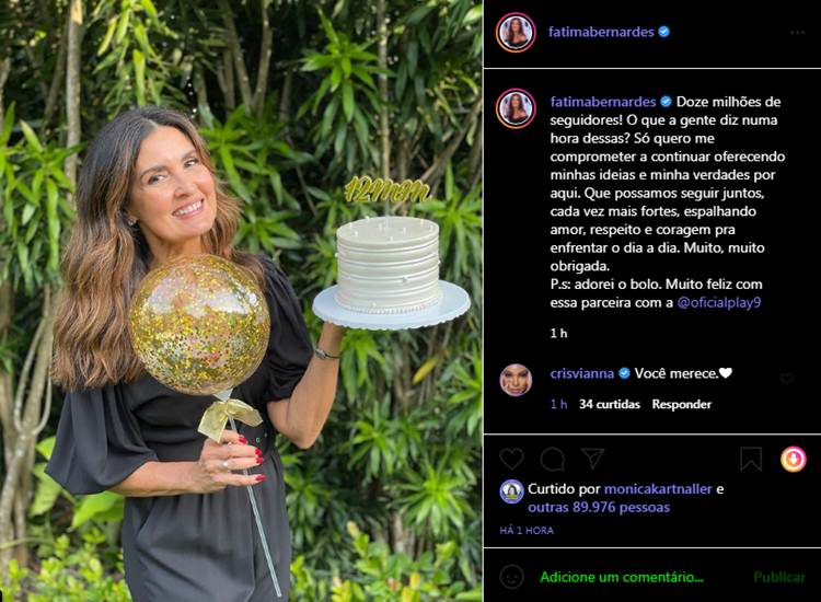 Os fãs da apresentadora também comemoraram. “Você merece.❤”, disse uma. “Adoramos sua autenticidade”, disse outra. “Maravilhosa, puro merecimento, amo você!!!”, elogiou mais uma. “12 milhões de pessoas que te admiram Fátima ❤ É uma honra fazer parte dessa união de amor”, ressaltou outra.