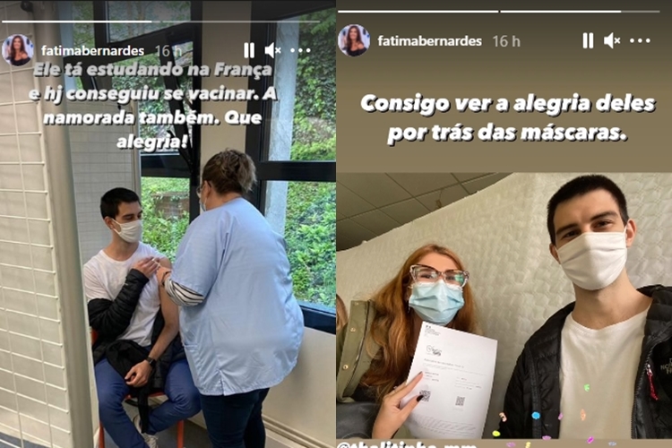 “Ele está estudando na França e hoje conseguiu se vacinar. A namorada também. Que alegria! Consigo ver a alegria deles por trás das máscaras”, escreveu Fátima.