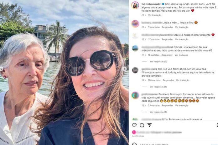 “Parabéns, Fátima, por fortalecer esses valores da vida, que são curtir e estar com quem amamos… faça valer a pena cada segundo”, destacou outro. “Linda sua mãe. Deus proteja vocês”, completou outra pessoa.