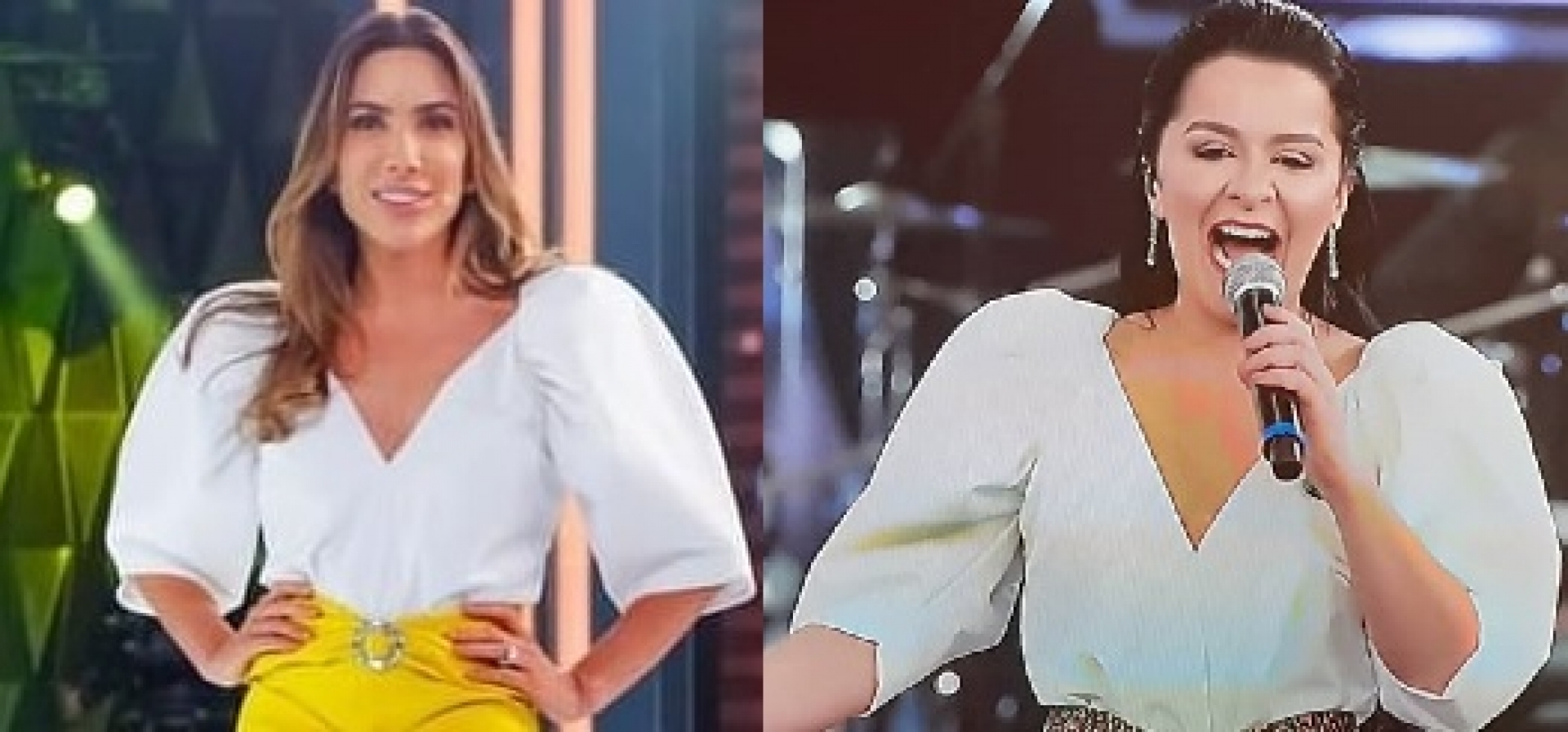 Mas o que mais chamou a atenção foi o fato de Maraisa usar a mesma parte de cima do look de Patricia. A famosa usou o mesmo look no mesmo momento. Que coisa, não?