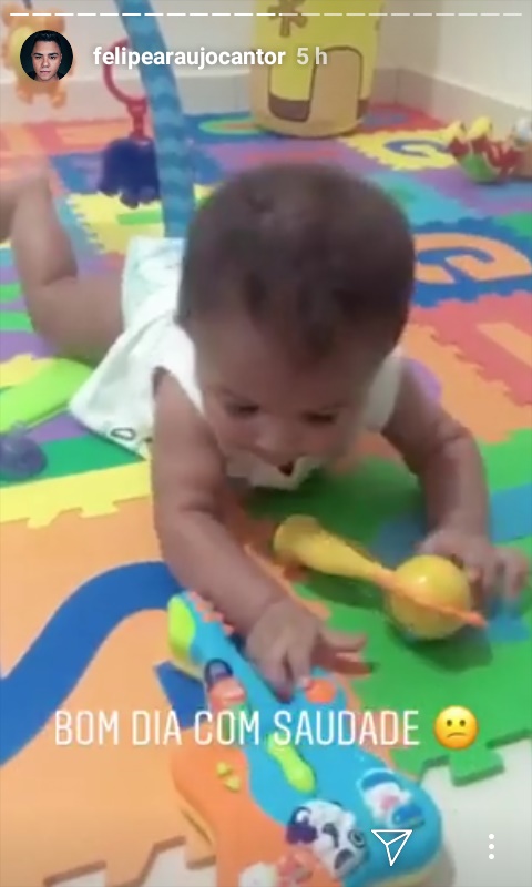 O cantor causou comoção nas redes sociais ao publicar uma foto rara do filho, Miguel. Na imagem, o pequeno aparece brincando em um cercadinho. Na legenda, uma mensagem singela: “Bom dia com saudade”, lamenta o cantor. O menino e o cantor vivem em cidades diferentes, o que dificulta a convivência entre os dois.