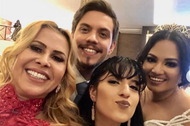 Contando com pouco mais de 300 convidados, a cerimônia contou com a celebração de Marco Aurélio Nogueira, conhecido como Jovem Celebrante. Na web, Joelma posou sorridente, ao lado da recém-casada e dos outros dois filhos, o músico Yago Matos, de 23 anos, e a caçula, Yasmim Mendes, de 14 anos. “Aqui é só alegria”, declarou.
