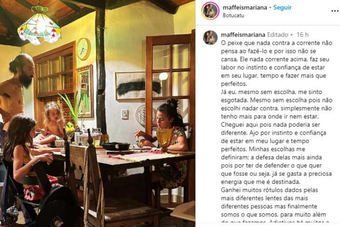 Falando ainda sobre o estilo de vida que escolheu, Mariana Maffeis deixou claro que suas escolhas a definiram. “Ganhei muitos rótulos dados pelas mais diferentes lentes das mais diferentes pessoas, mas finalmente somos o que somos, para muito além do que fazemos”, comentou.