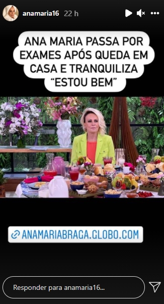 No entanto, a diretora do Mais Você da Globo, ainda pontuou o que realmente havia acontecido com Ana Maria. “Ela acordou ontem e desceu para a cozinha, onde escorregou e caiu. Bateu forte a cabeça, e por isso, os filhos foram logo com ela para fazer uma tomografia. O Dr. Buzaid (médico) foi vê-la no fim do dia e viu que a pressão estava baixa”, comentou.