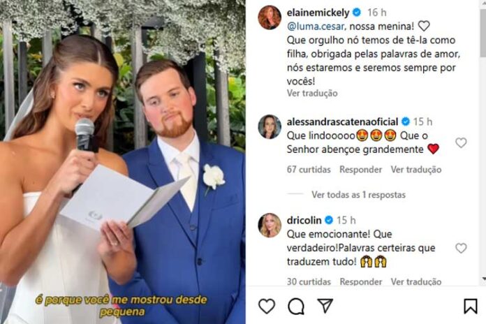 Luma Costa também se declarou para Elaine Mickely e toda a família, dizendo que irá levar para a sua vida o que aprendeu com os pais, prometendo honrá-los durante o seu matrimônio.