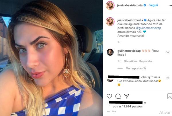“Agora vão ter que me aguentar fazendo foto de perfil hahaha @guilhermevieirap arrasa demais né?! Amando meu nariz!”, escreveu ela na legenda.