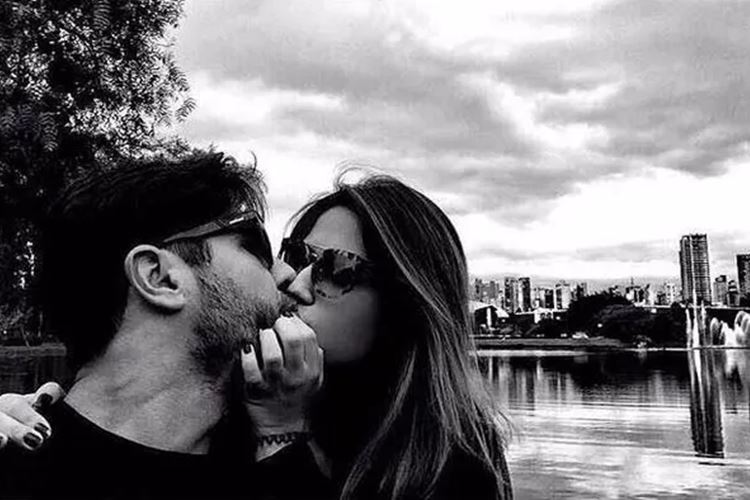 Jéssica Costa, a filha de Leonardo, postou uma foto em seu Instagram, em que aparece beijando Sandro Pedroso. Os dois estão esperando um filho.