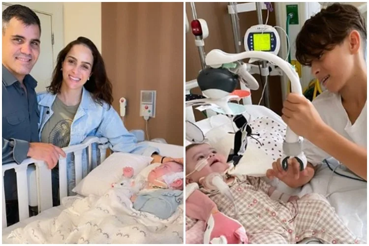Que fofos! Nesta segunda-feira (26), a filha caçula de Letícia e Juliano Cazarré recebeu visitas especias. Maria Guilhermina, que permanece internada em um hospital para tratar uma doença no coração, ganhou a presença dos irmãos.
