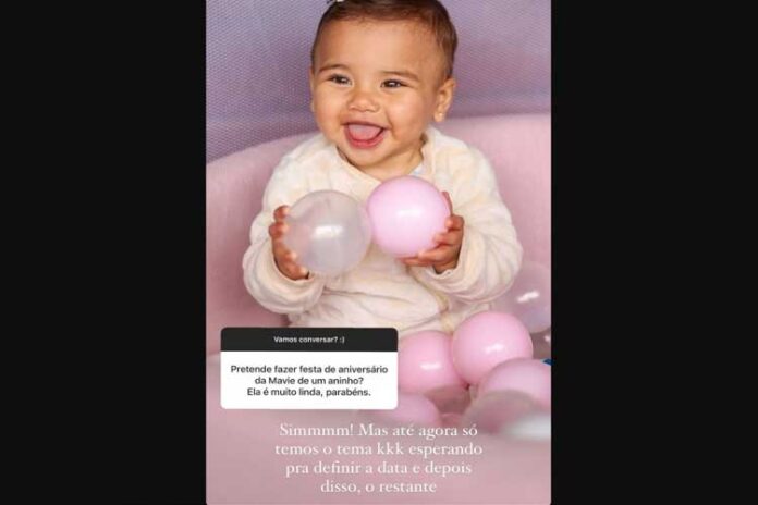 “Pretende fazer uma festa de aniversário da Mavie de um aninho? Ela é muito linda, parabéns!”, questionou uma seguidora. “Sim! Mas até agora só temos o tema. Estamos esperando para definir a data e, depois disso, o restante”, disse Bruna na ocasião.