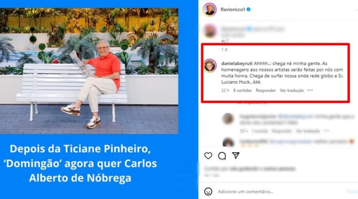 Através dos comentários da publicação de Flávio Ricco, referente ao assunto no Instagram, Daniela escreveu: “Ahhhh..: chega né minha gente. As homenagens aos nossos artistas serão feitas por nós com muita honra. Chega de surfar nossa onda Rede Globo e Sr. Luciano Huck… kkk“, disse ela, encerrando suas falas com risos.