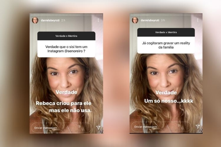 Através da ferramenta stories de seu Instagram, a personalidade acabou falando sobre o seu progenitor e a relação do apresentador com as redes sociais. Daniela abriu uma caixinha para os fãs enviarem as suas curiosidades. As que considerou mais interessante, ela respondeu.