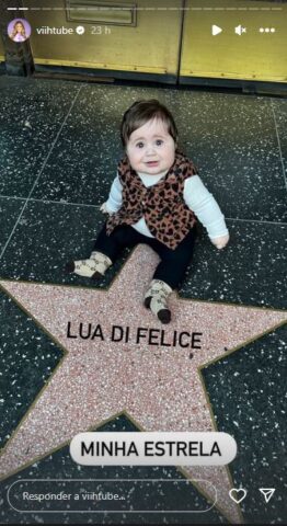 A influenciadora digital, atriz e ex-BBB Viih Tube, 23 anos, surpreendeu a todos na noite de ontem, 07 de novembro. Uma cena chamou a atenção de algumas internautas, quando a ex-sister compartilhou uma imagem de sua filha, Lua di Felice na calçada da fama, em Hollywood. Vale lembrar que a mulher se encontra nos Estados Unidos ao lado de seu companheiro Eliezer para aproveitar as férias.