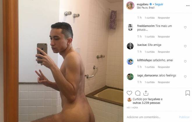 Mas teve quem também não gostou da publicação do jovem. “Parece um pornô”, “O biscoito foi dado com sucesso”, “Errou a rede social”, “Interessante mas você não precisa de nudez para mostrar o brilho que você tem”.