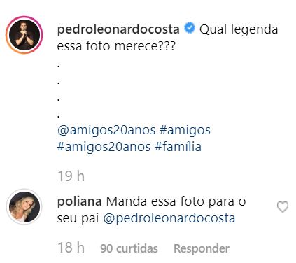 “Manda essa foto para o seu pai @pedroleonardocosta”, pediu ela.