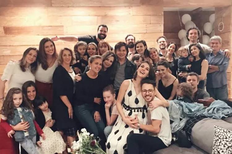 O menino aparece no colo do pai, Lucas Limas, e ao lado da mamãe coruja. Na imagem, também estavam presentes Noely, Xororó, Serginho Groisman com a mulher, Fernanda Molina, e o filho, Thomas, Marco Luque e Flávia Vittorino.