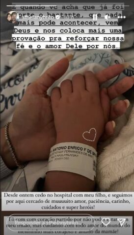 Dessa forma, por meio dos stories no Instagram, Sthefany Brito comunicou: “E quando você acha que já foi forte o bastante, que nada mais pode acontecer, vem Deus e nos coloca mais uma provação pra reforçar nossa fé e o amor Dele por nós…“, disse ela, que ainda informou que o seu filho está internado desde domingo (24).