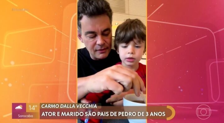 O programa Encontro, exibido pela Rede Globo na manhã desta quarta-feira (19), contou com a presença do ator Carmo Dalla Vecchia como um dos convidados especiais. Durante a conversa, o público foi surpreendido com uma rara aparição do pequeno Pedro, de três anos de idade, que encantou a todos ao surgir em momentos de carinho com o pai no telão do estúdio.