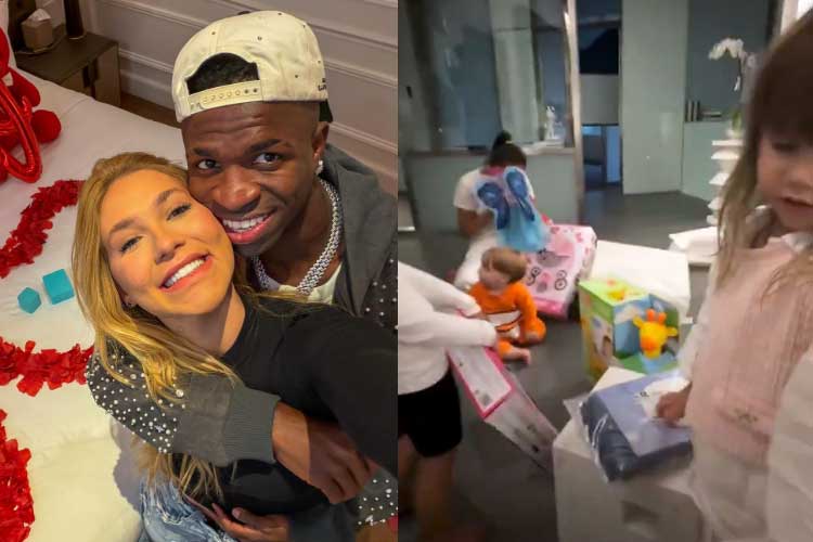 Os filhos de Virginia Fonseca, Maria Alice, Maria Flor e José Leonardo, foram surpreendidos por Vini Jr. Após assumirem o relacionamento, o jogador presenteou não somente a influenciadora, como também seus herdeiros.