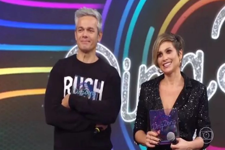 Flávia Alessandra e seu marido o apresentador Otaviano Costa foram convidados do quadro ‘Ding Dong’ deste Domingão ( 28).