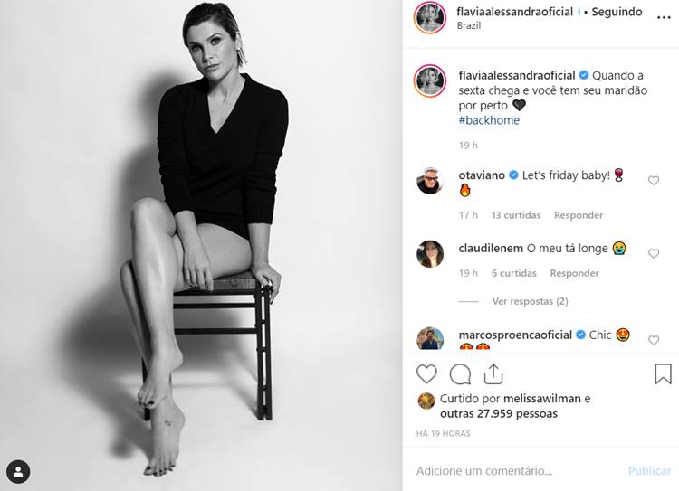 De volta das férias, Flávia retornou para casa cheia de saudade. Em sua rede social, a atriz postou um click em preto e branco, em que apareceu cheia de atitude e sensualidade.