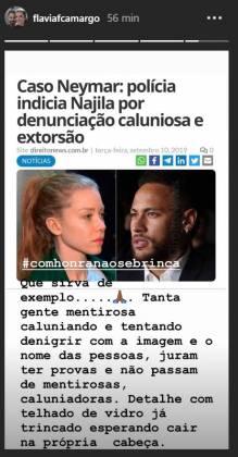 “Que sirva de exemplo … Tanta gente mentirosa caluniando e tentando denigrir com a imagem e o no me das pessoas, juram ter provas e não passam de mentirosas, caluniadoras. Detalhe com telhado de vidro já trincado esperando cair na própria cabeça”, escreveu ela.